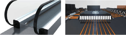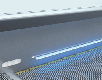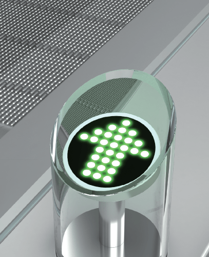 It not only demonstrates the beautiful light beam, but also emphasizes the visibility of the moving walk in the entire building, making carriage more comfortable and safer.